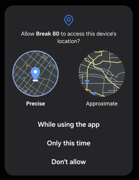 Step 5 – Allow the Break 80 App to Access the Device’s Location
